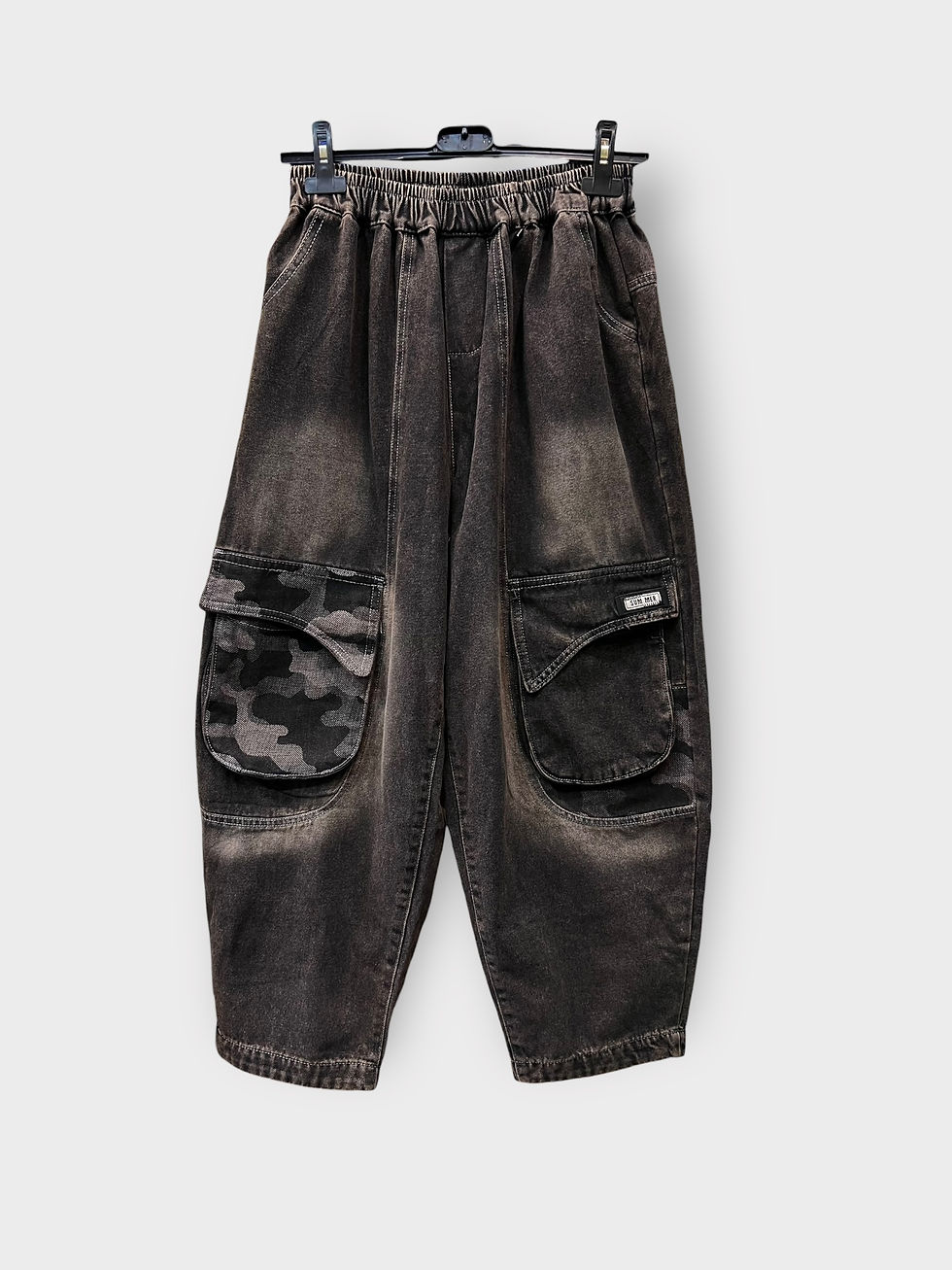Cotton Skirt With Elastic Waist, Pockets, and Sewn Piece with black fabric in the lower part of the Skirt Representing a Branch
