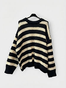 Oversized Ριγέ Πλεκτό Πουλόβερ